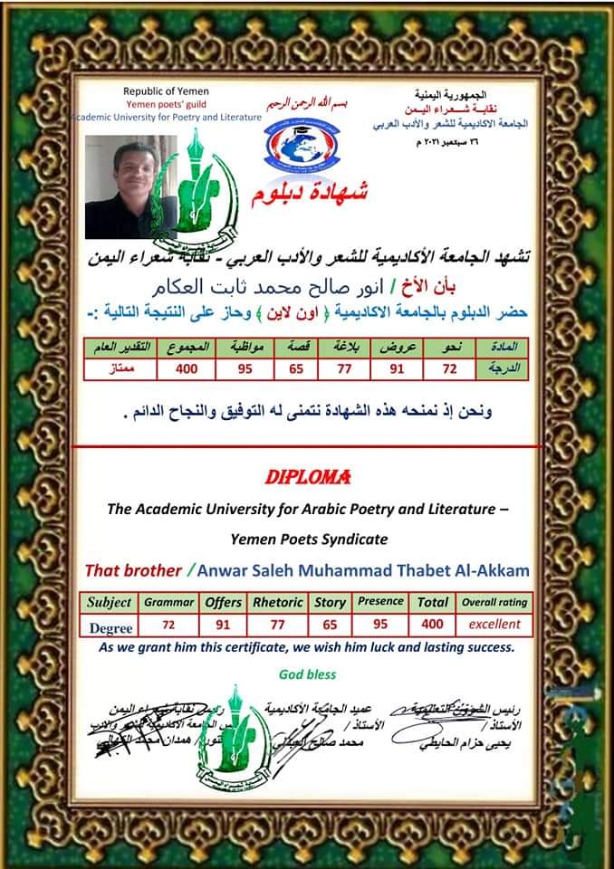 شهائد خريجي الجامعة الأكاديمية للشعر والأدب الدفعة الأولى الحصول على الرابط Facebook X Pinterest بريد إلكتروني التطبيقات الأخرى سبتمبر 22, 2022 الحصول على الرابط Facebook X Pinterest بريد إلكتروني التطبيقات الأخرى تعليقات